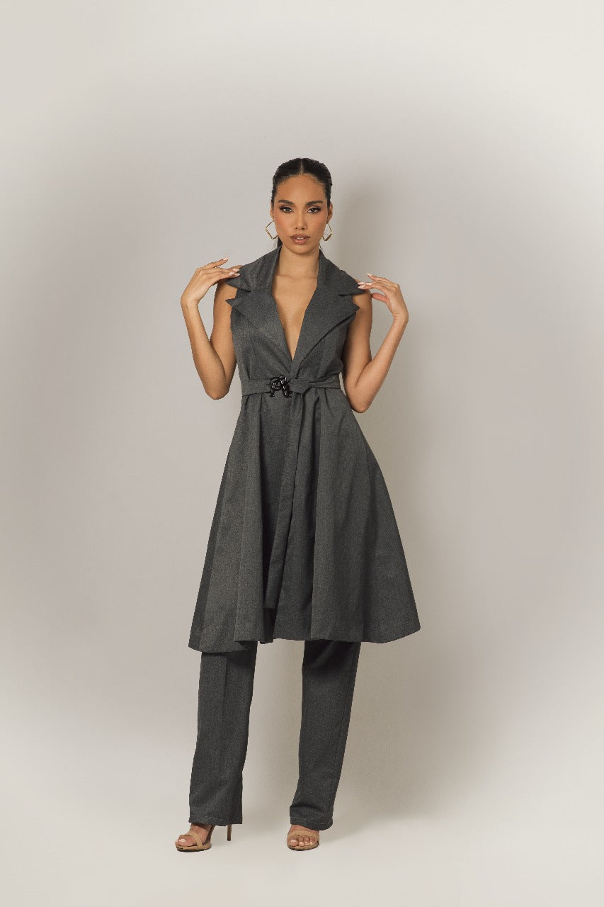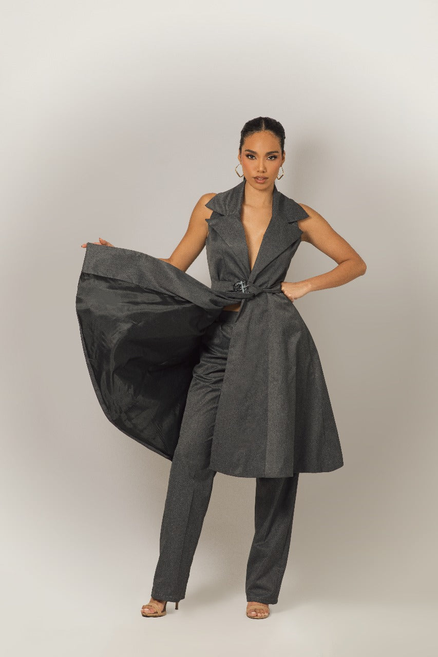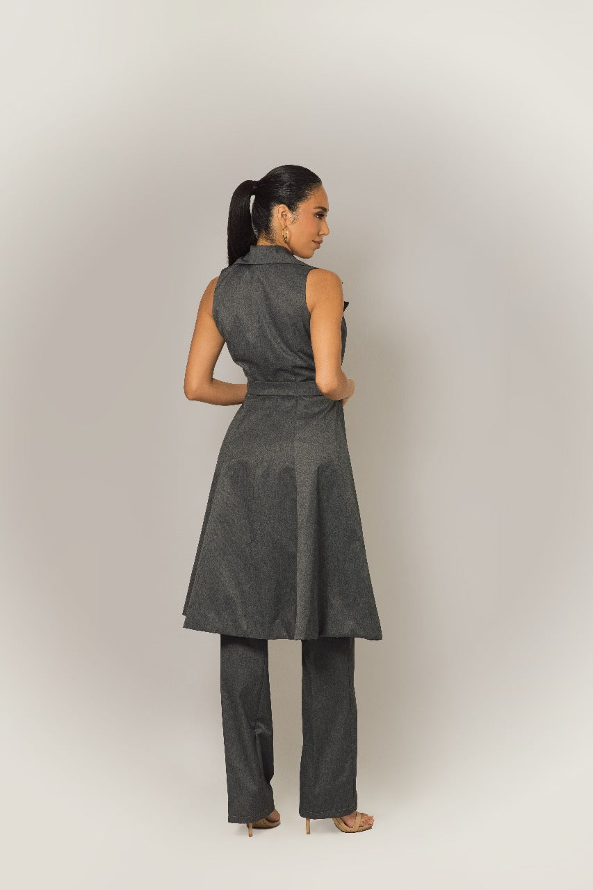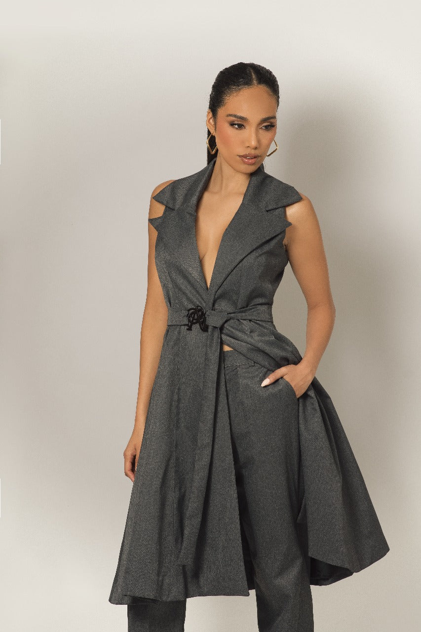 Chaleco largo ideal para combinar y elevar tu outfit para eventos formales, lo puedes usar como blusa o como vestido.