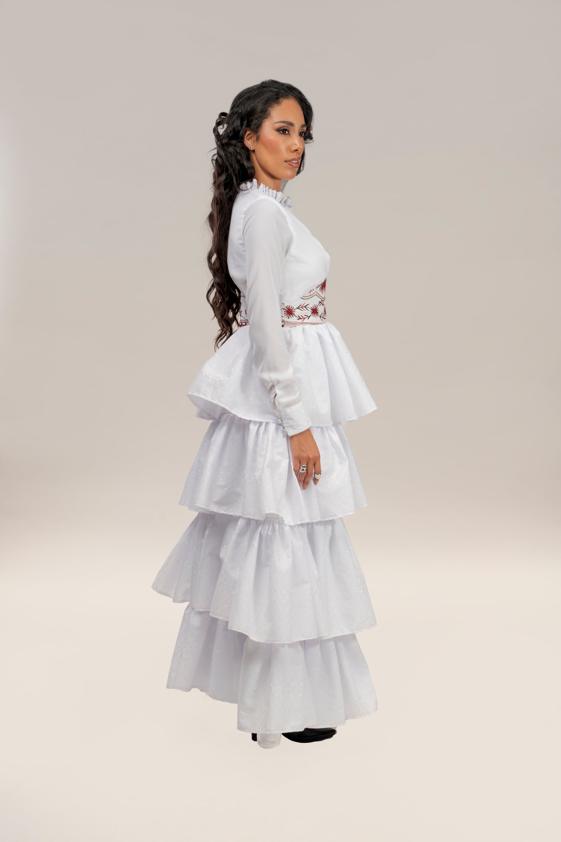 Vestido con bordado original de Tlahuitoltepec, Oaxaca