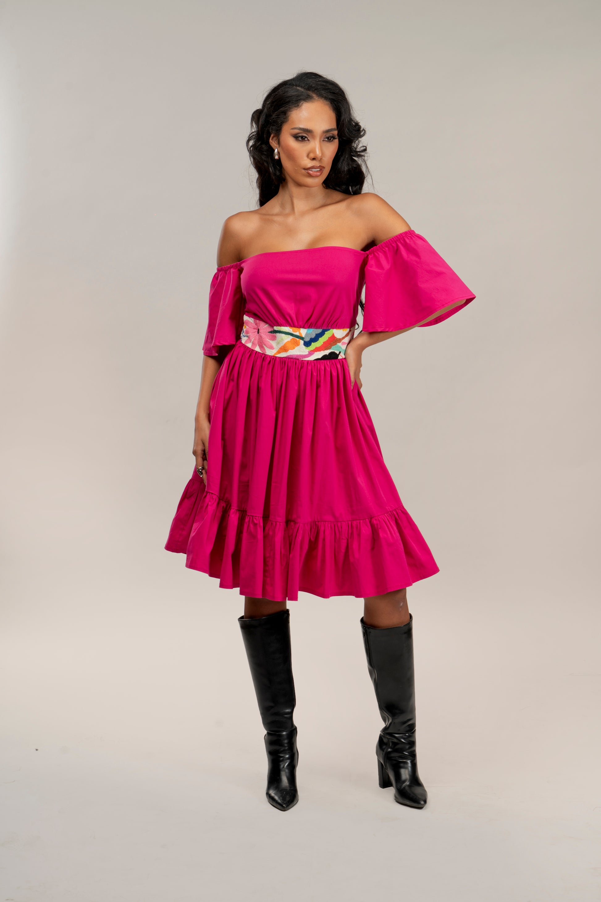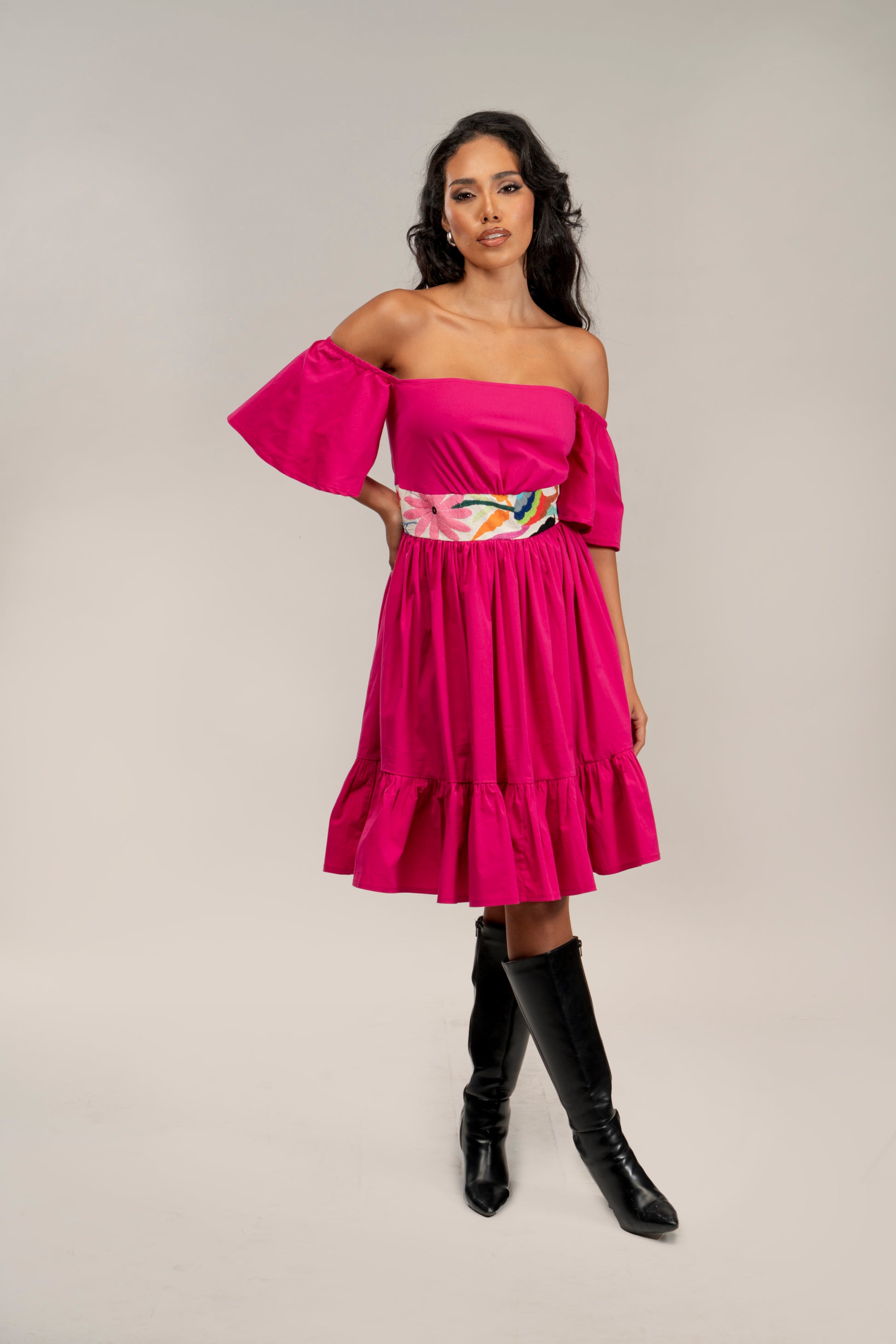 Vestido con bordado original multicolor de Tenango, Hidalgo
