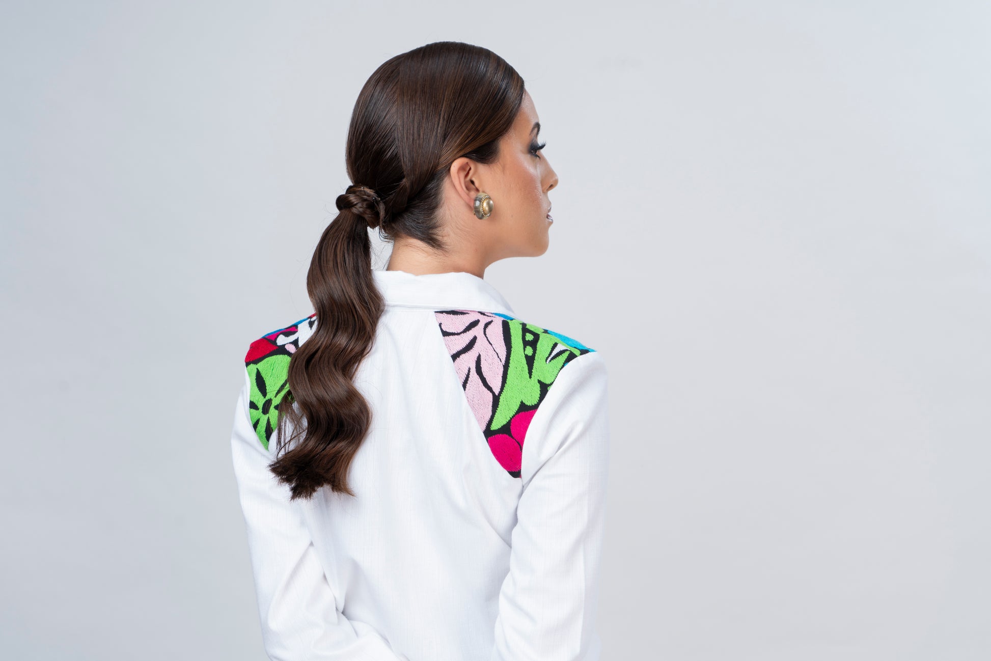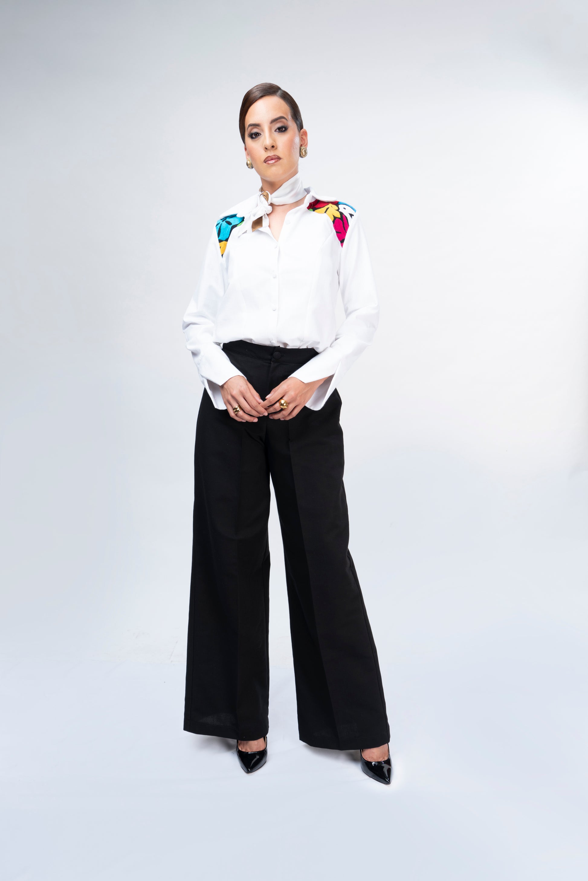 Camisa formal de lino blanco con bordado de Tuxtepec, Oaxaca.