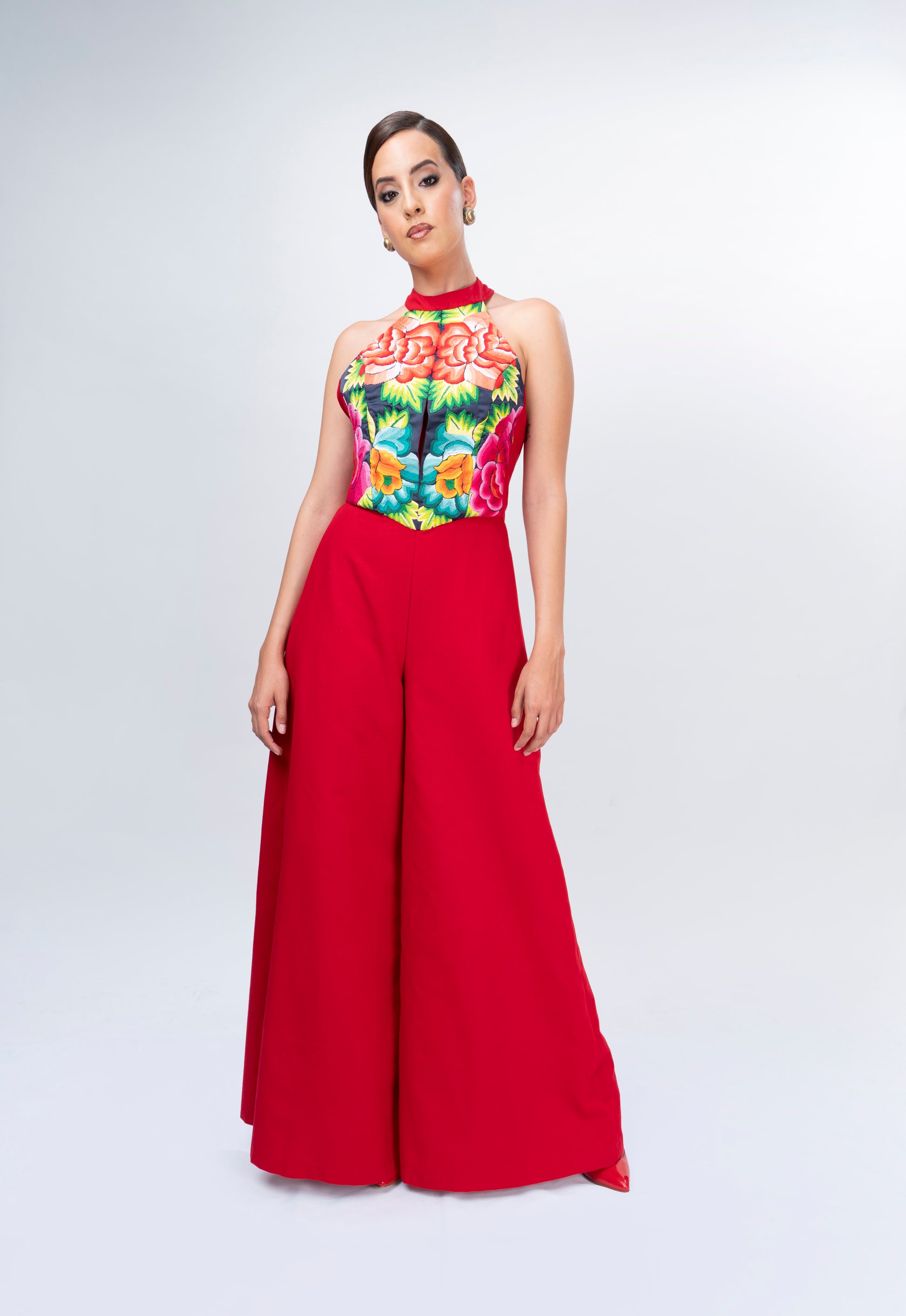 Palazzo de lino rojo con bordado del Istmo de Tehuantepec.