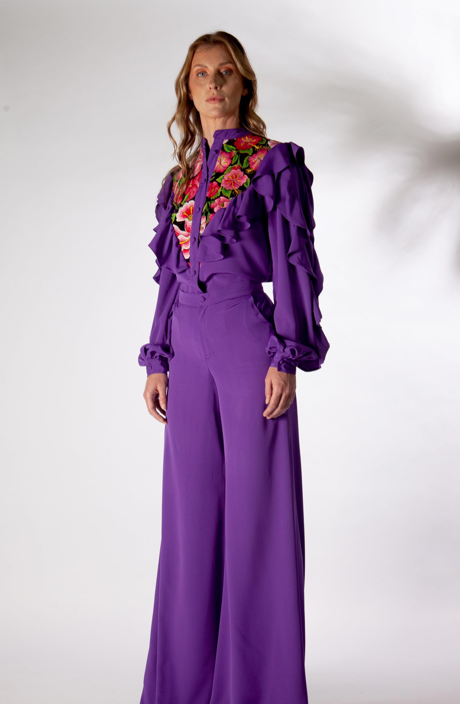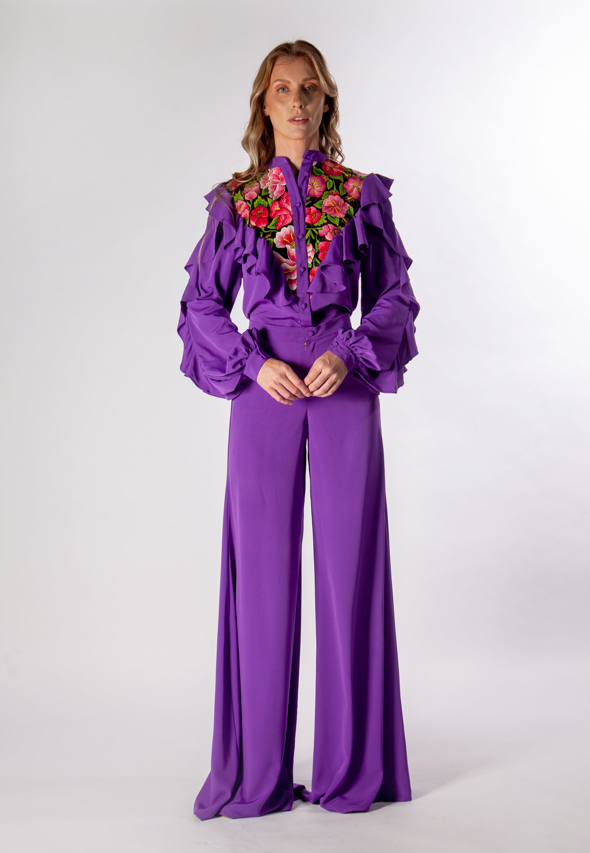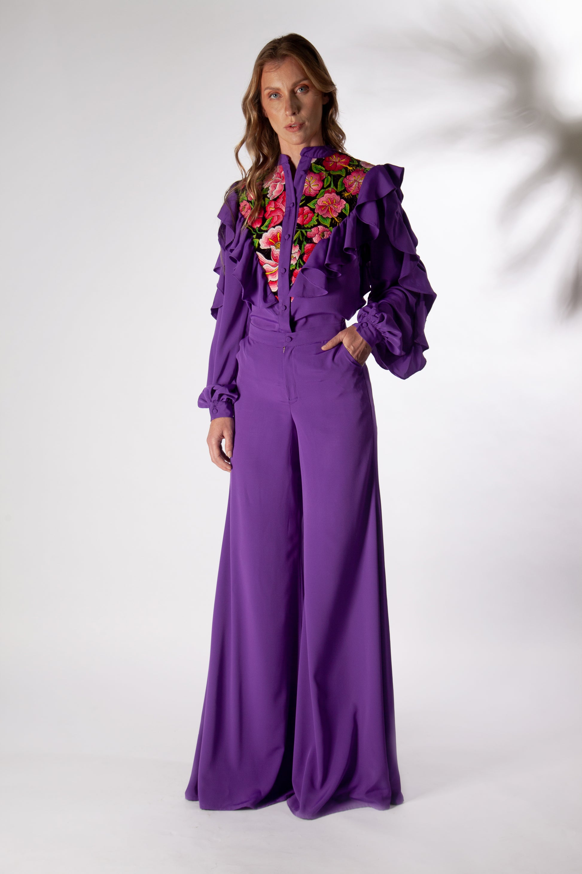 Pantalón Georgia de tela ligera ideal para lucir mas altas y de pierna ancha que aporta efecto de falda-pantalón