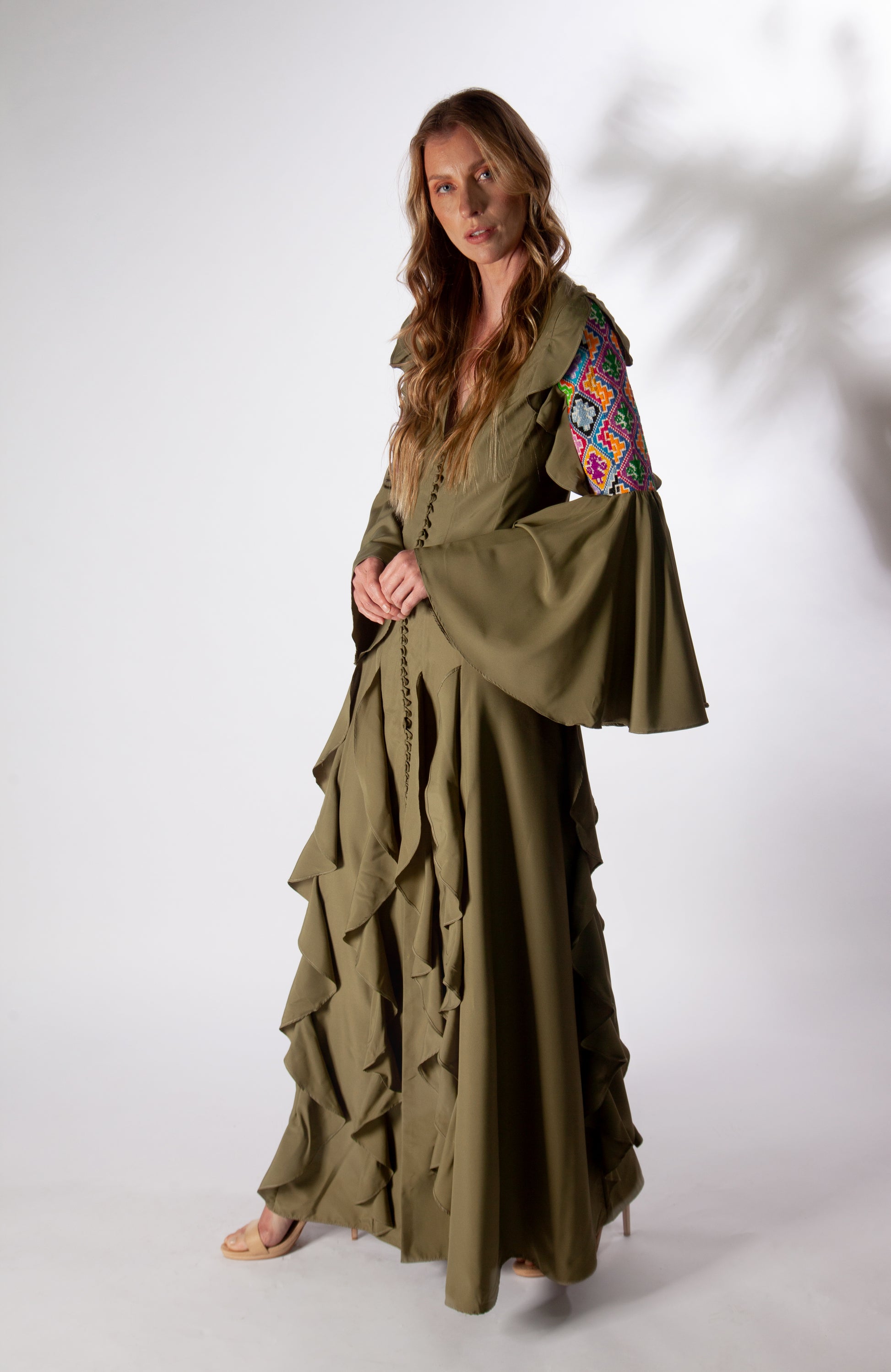 Vestido Giannina con escarolas y bordado original de Ejutla de Crespo, Oaxaca